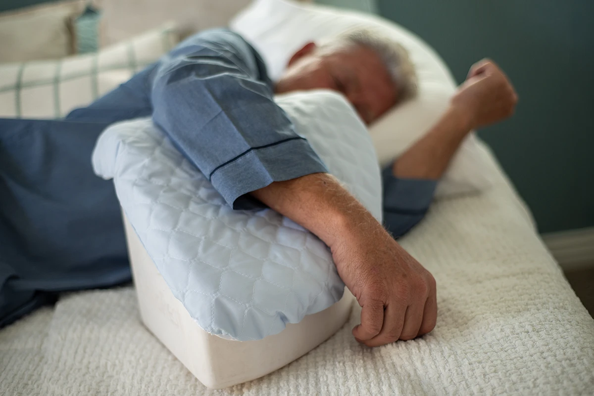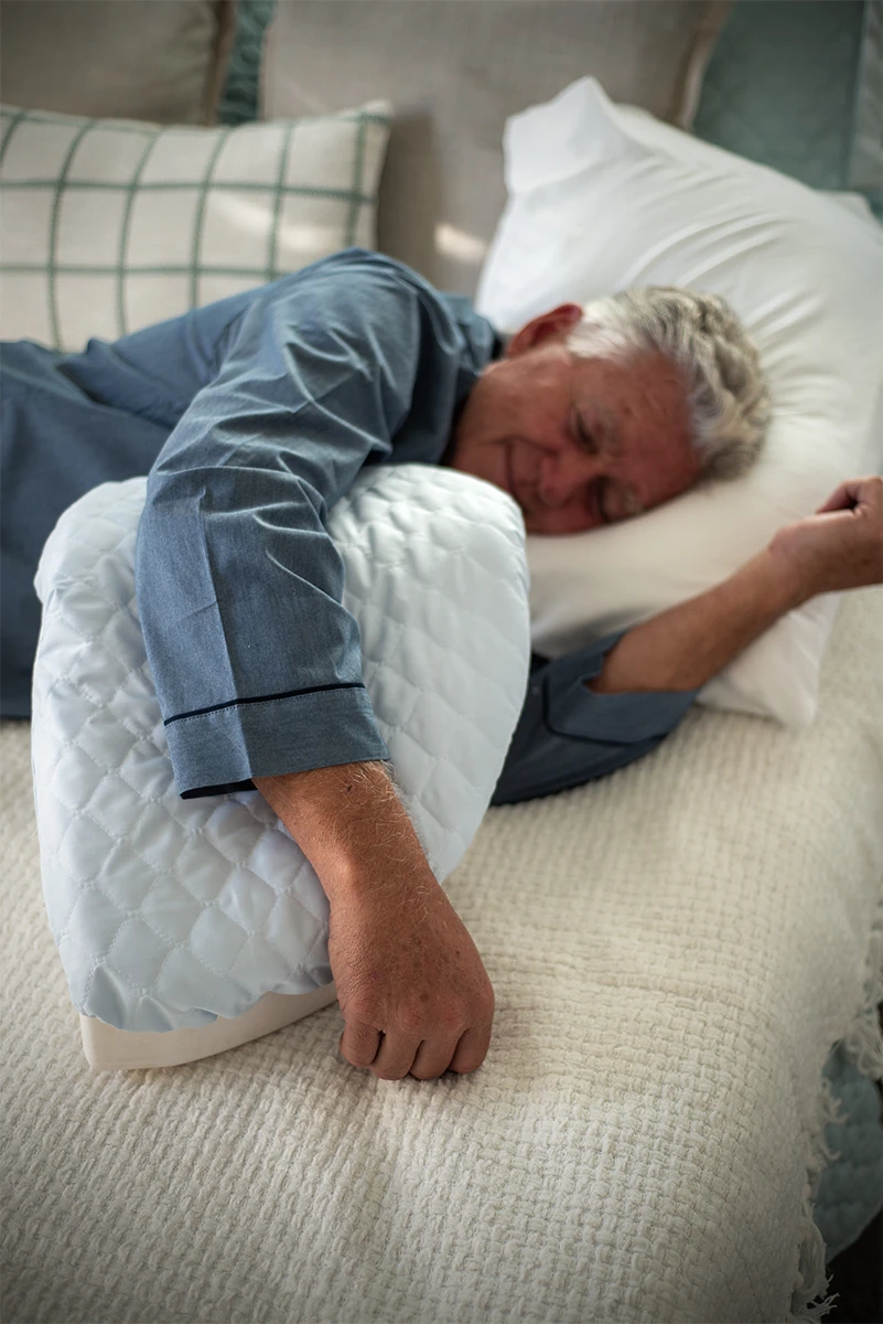 Contoured to cradle the arm in a supported, slightly elevated position — reducing strain on the surgical site and preventing the painful rolling that wakes patients up at night.